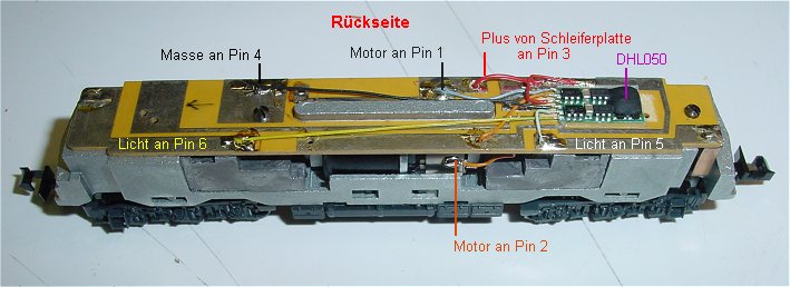 Umbauanleitung: Hier Einbau eines DHL050 Decoders.