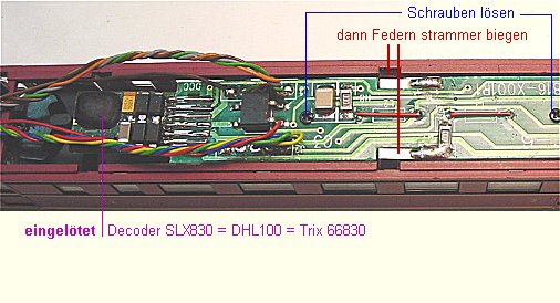 Umbauanleitung: Der Dummy wird durch SLX830=DHL100=Trix66830 oder durch SLX870=DHL161=Trix66836 ersetzt