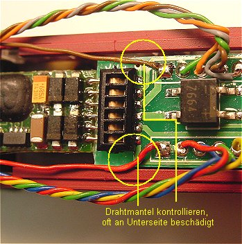 unsauberen Kontakt der Federn mit den Decoderpins. Zwar wurde der schwarze Federhalter durch einen zusätzlichen