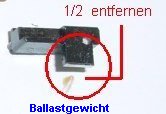 Vom hinteren Ballastgewicht wird die im Bild vordere Hälfte abgesägt, damit ist Platz geschaffen, um den zweiseitig