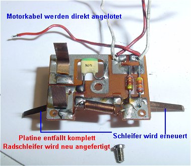 Bis auf die Motorfedern wird alles von der Platine abgelötet.
