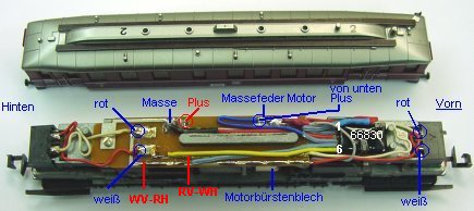 entfallen. Motor ausbauen und Massefahne hinten abzwicken. 2 Litzen an die Motorbürstenhalter löten, Motor