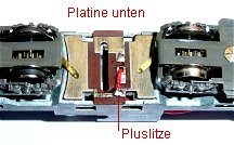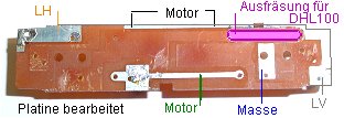 zweiten Motoranschluss benutzt. Decoderlitze rechts ablöten und links am Ende durch das vorhandene Loch eine