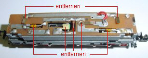 einschließlich der beiden Nieten, die Motorfeder vorn sowie die nicht mehr benötigte Mittelleiterbahn und die
