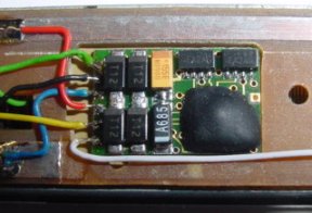 Nochmals etwas größer der eingebaute Decoder im Platinenausschnitt.