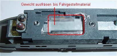 Umbauanleitung: Es passt ein TRIX 66836 in einen Ausschnitt im Ballastblei. (baugleich DHL100)