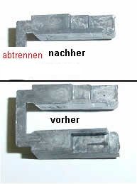 Von dem rechten Ballastblei wird der im Bild untere Teil abgesägt da der Kühndecoder auf der Motorrückseite rechts