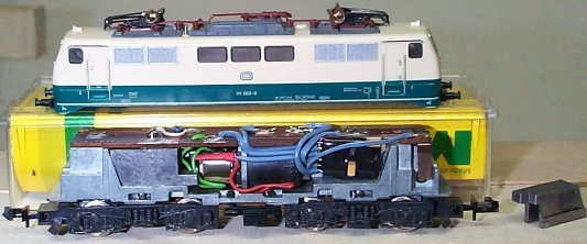 entfernen, Lötbrücke so anbringen das die Lok nur auf Unterleitung läuft, nur ein Kabel nach oben Führen. Dekoder