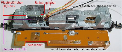 Umbauanleitung: Es passt ein DHL100 / SLX830 oder ein DCC SLX870 oder Kühn N025 seitlich