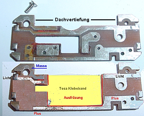 Hier der Umbau ohne zusätzliche Masselitzen links und rechts. für Plus wurde ein Teil der Leiterbahn benutzt.