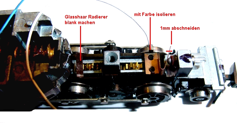 Bei alten Loks mit schlechter Masseverbindung über die Drehgestellschrauben kann man eine Messingnagel in eine