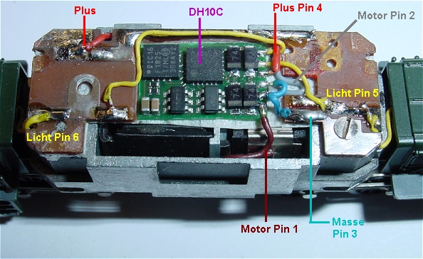klebendes Tesaband geklebt. auf diesem klebt der Decoder DH10C im Ausschnitt seitlich über dem Motor.