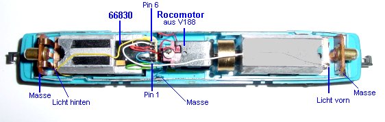 Umbauanleitung: Es passt ein Selectrix 66830 oder ein DHL 100. Hier der Umbau mit Rocomotor aus der V188 und