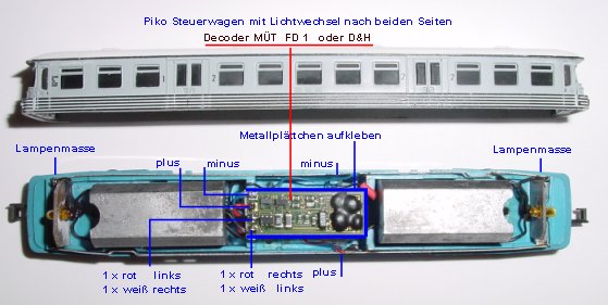 Soll der Steuerwagen ebenfalls Lichtwechsel weiß / rot in beiden Richtungen haben, dann wird die Stromabnahme wie oben