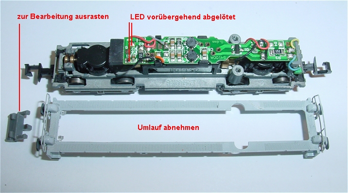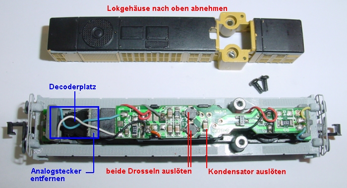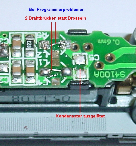 ebenfalls ausgelötet und erst dadurch ein Programmieren des Decoders möglich.