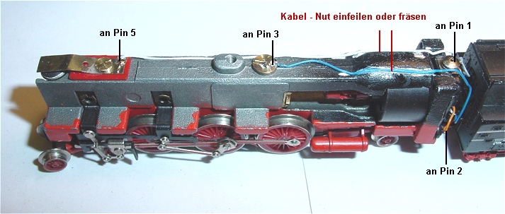 Tender wird zuerst bearbeitet. Die KabeldurchFührung wird mindestens 1mm tiefer ausgeschnitten sonst werden die Kabel bei
