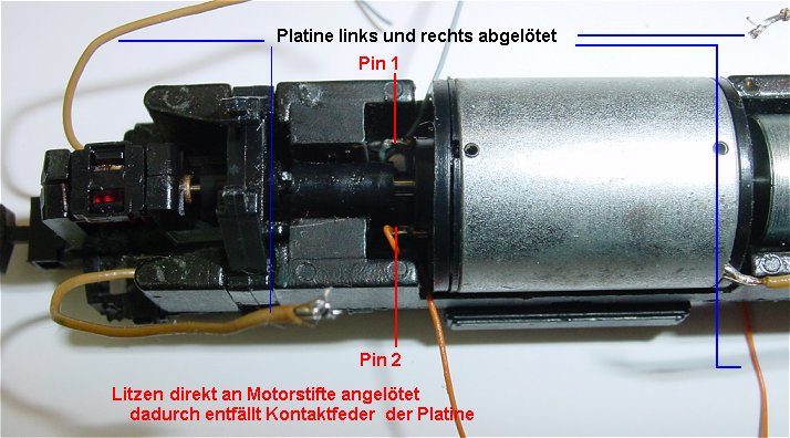 entfällt die Feder der Platine und es ist mehr Platz für den Decoder vorhanden. Motor wieder einsetzen.