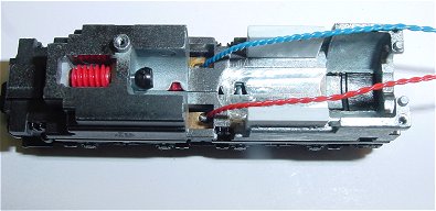 Lokeinheit nach dem Umbau. für die Lampenmasse muss gesorgt werden. Dazu wird die blaue Litze von den Schleifern der