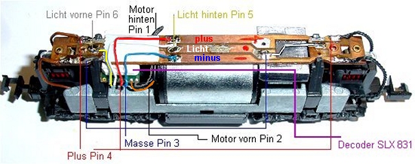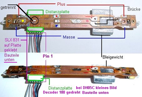 Belieben. Soll der Decoder für DCC benutzt werden und es wird eine rote Schlussbeleuchtung eingebaut muss vor dem Einkleben