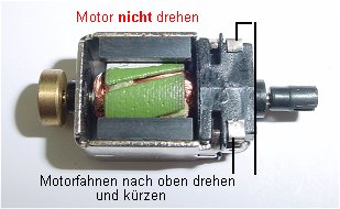 Auf die beiden Magnete des Motors wird je ein Plastikplättchen 0,5 mm dick, 2 mm breit aufgeklebt und darauf der