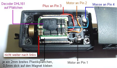 Multiprotokolldecoder DHL161. Wichtig ist, den decoder nicht weiter nach links aufzukleben, sonst passt der Kohleaufsatz