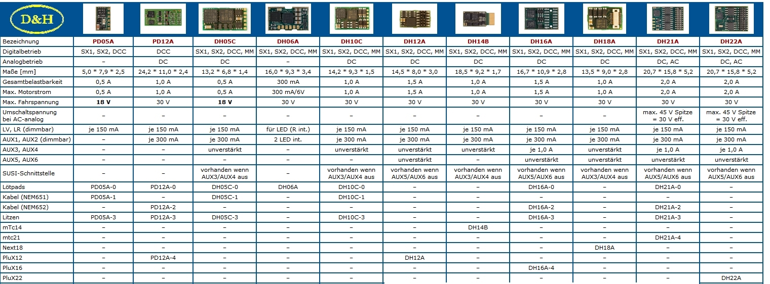 DHL100 D&H Decoder mit ASIC und Zusatzkanal SX I und DCC