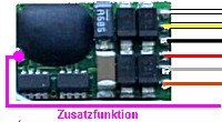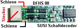 DFHS 00 Susi Schaltdecoder mit S.U.S.I.-Stecker. Schienenanschlüsse links und rechts