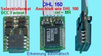 DHL 150 Selectrix und DCC Format, beidseitig bestückt, Formaterkennung automatisch.