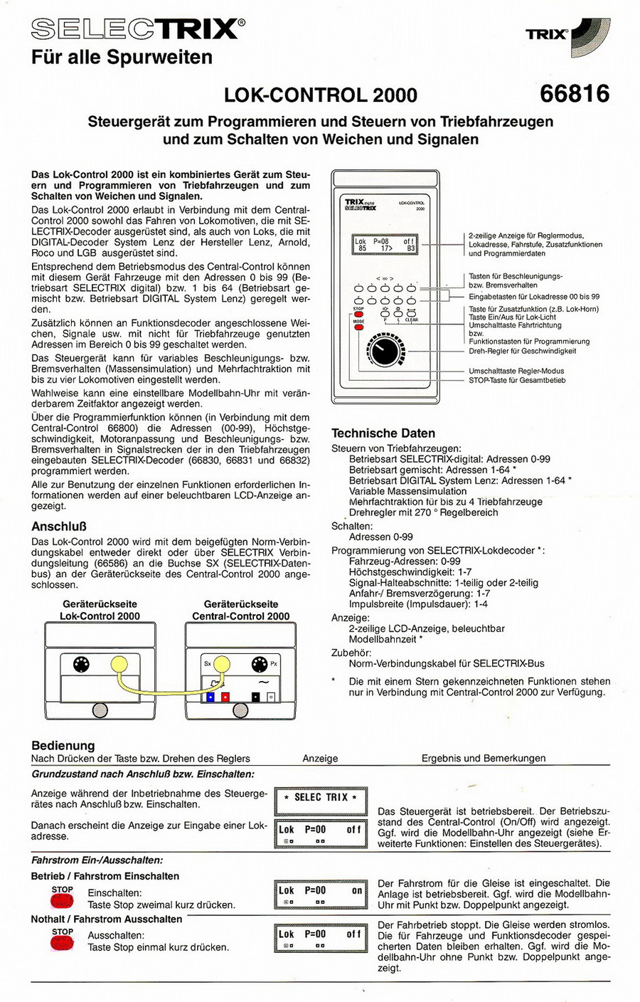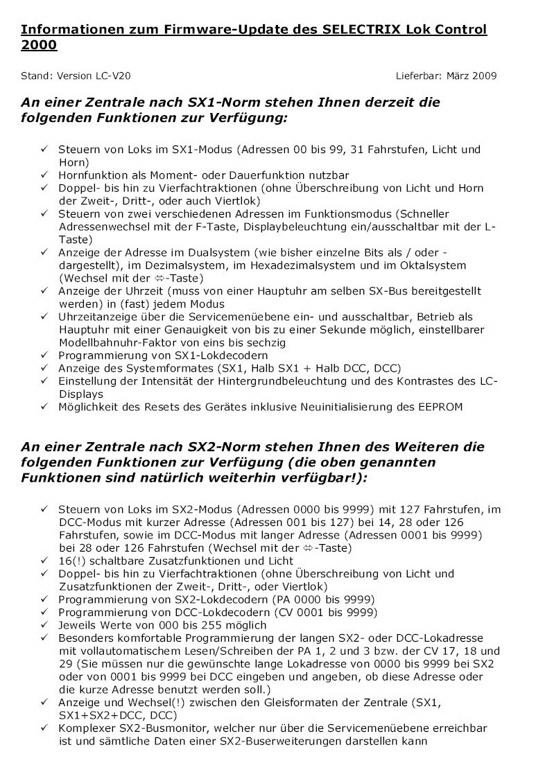 Die Bedienungsanleitung für Lok-Control 2000 (mit Chip-Update) finden Sie unter "digitronic-brand.de" und unter Rubrik "Download".