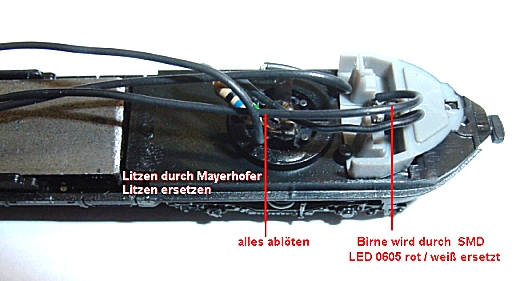 Drähte durch Mayerhofer Litzen zu ersetzen und gleich LEDs einbauen. Der Motorwagen