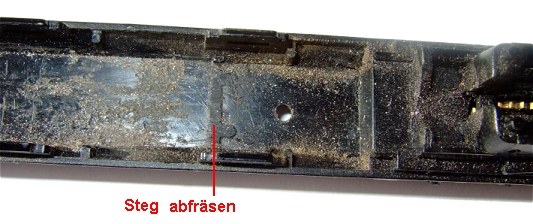 Nach Ausbau des Motors wird der ehemalige Motorhaltesteg weggefräst und das Ballastblei