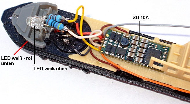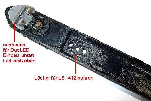 Der graue Führerstand wurde zum Einkleben der beiden LEDs, (DUO LED und normal LED) herausgenommen.