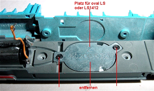 Das Lautsprechergewicht wird ersatzlos entfernt und der Lautsprecher mit Litzen eingelegt. Es passt auch ein LS1412.