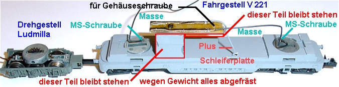 werden können. Daher habe ich die V221 durch Entfernen von Masse so leicht gemacht, das sie wie ein Wagen gezogen werden kann,