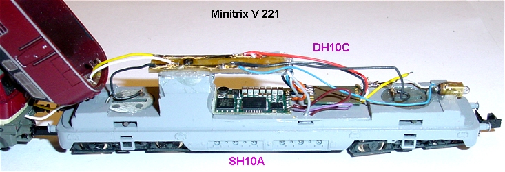 V 221 verdrahtet. SH10A ebenfalls auf einem Kunststoffplättchen, daneben DH10C. Dieser muss natürlich