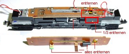 damit Sound und Fahrdecoder oben auf dem Platinenrest Platz haben.