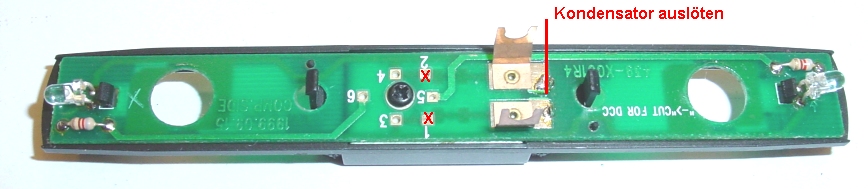 SMD-Kondensator ausgelötet. Lötpad 1 und 2 wird nicht benutzt weil dadurch zwei