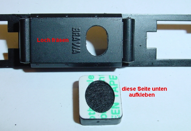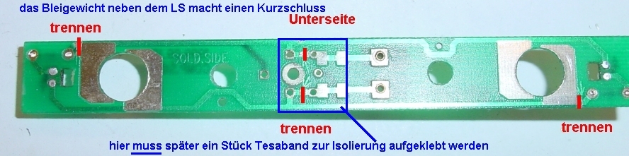 Weiterhin muss später ein Stück Tesaband aufgeklebt werden sonst macht das Bleigewicht, wenn die Platine wieder aufgeschraubt wird, einen