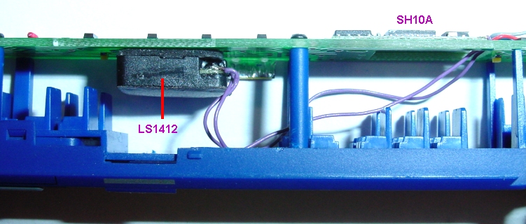 Dieser ist über die Öffnung auf der Platine geklebt. Lautsprecherlitzen führen unter der Platine zur Mitte.