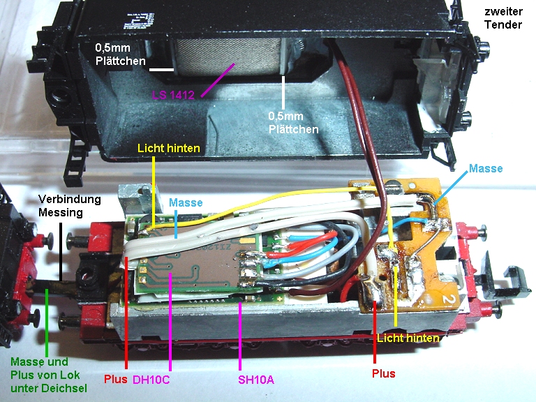 Da diese Lok tatsächlich mit zwei ältendern unterwegs ist bot es sich an im zweiten Tender einen D&H Sounddecoder einzubauen.