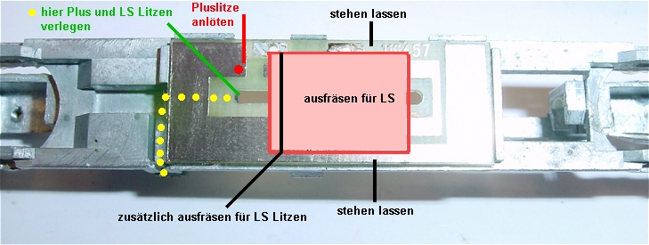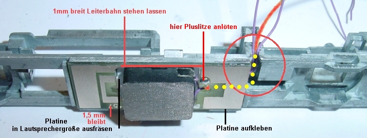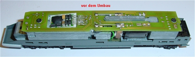 Platine wird abgenommen und der Analogdummy ( oder der Decoder ) ausgebaut. Anschließend wird die Platine bearbeitet.