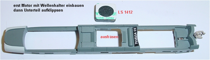 Unterteil mit Ausschnitt für LS versehen, nicht vergessen den 1mm breiten Steg auf der Innenseite abzuschneiden sonst