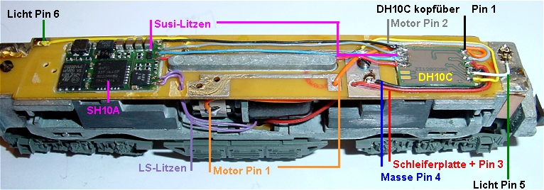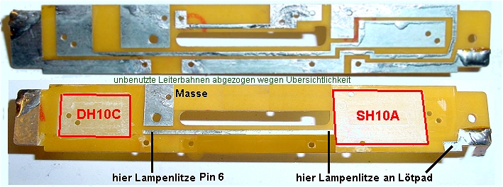 Und hier nun die Fertigstellung: SH10A und DH10C aufgeklebt. Der DH10C kopfüber, weil man dann alle Lötpins auf einer Seite