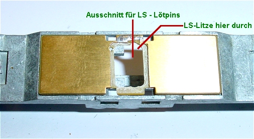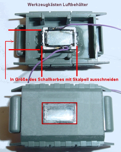 Der Lautsprecher wird bündig mit der Unterkante eingeklebt weil diese sowieso nur 1mm über Schienenoberkante ist.