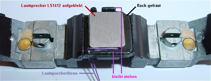 Lautsprecher aufkleben und Litzen außen verlegen.