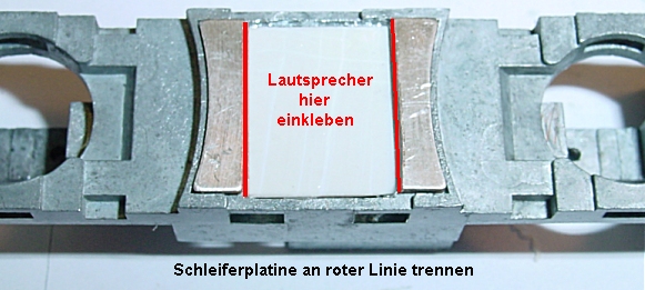 der Schleiferplatte getrennt werden. Dies Teile werden mit Sekundenkleber aufgeklebt. Es bleibt genügend Platz für die Schleiferfedern wenn man