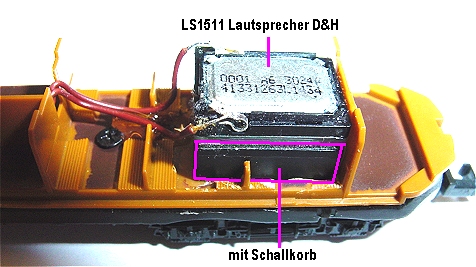 Der Motorwagen: Hier sitzt eine schwarze Abdeckung über dem Decoderplatz die nach oben einfach abgezogen wird. Gehalten wird diese Abdeckung
