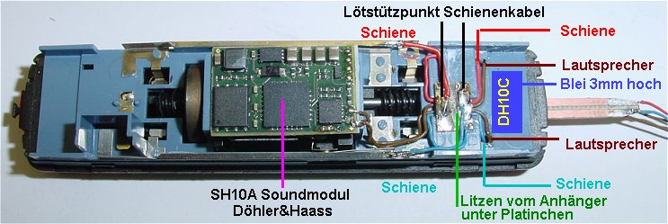 Umbauanleitung: Es wurde ein Multiprotokolldecoder DH10C & ein Sounddecoder SH10A von D&H verwendet.
