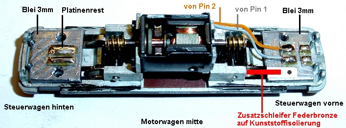 zusätzliche Stromabnahmefedern angebracht. Weiterhin benutze ich Platinenreste als "Lötstützpunkte"