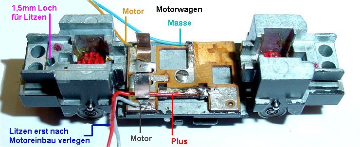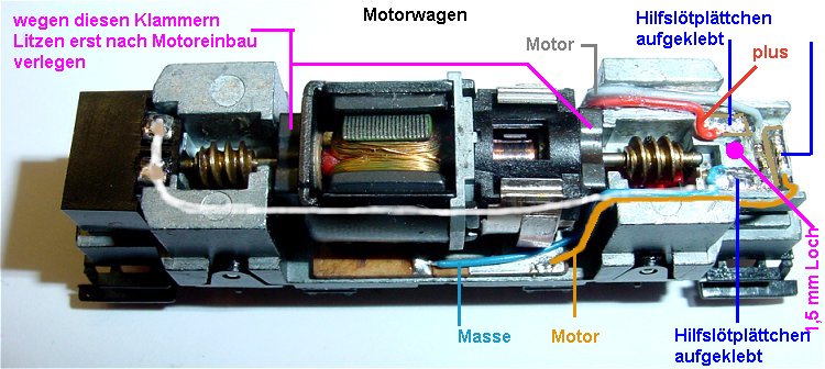 angelötet welches einmal zum Motorwagen führt, weiter sind dort die Anschlüsse der Stromabnehmerfedern dran und je ein Stück